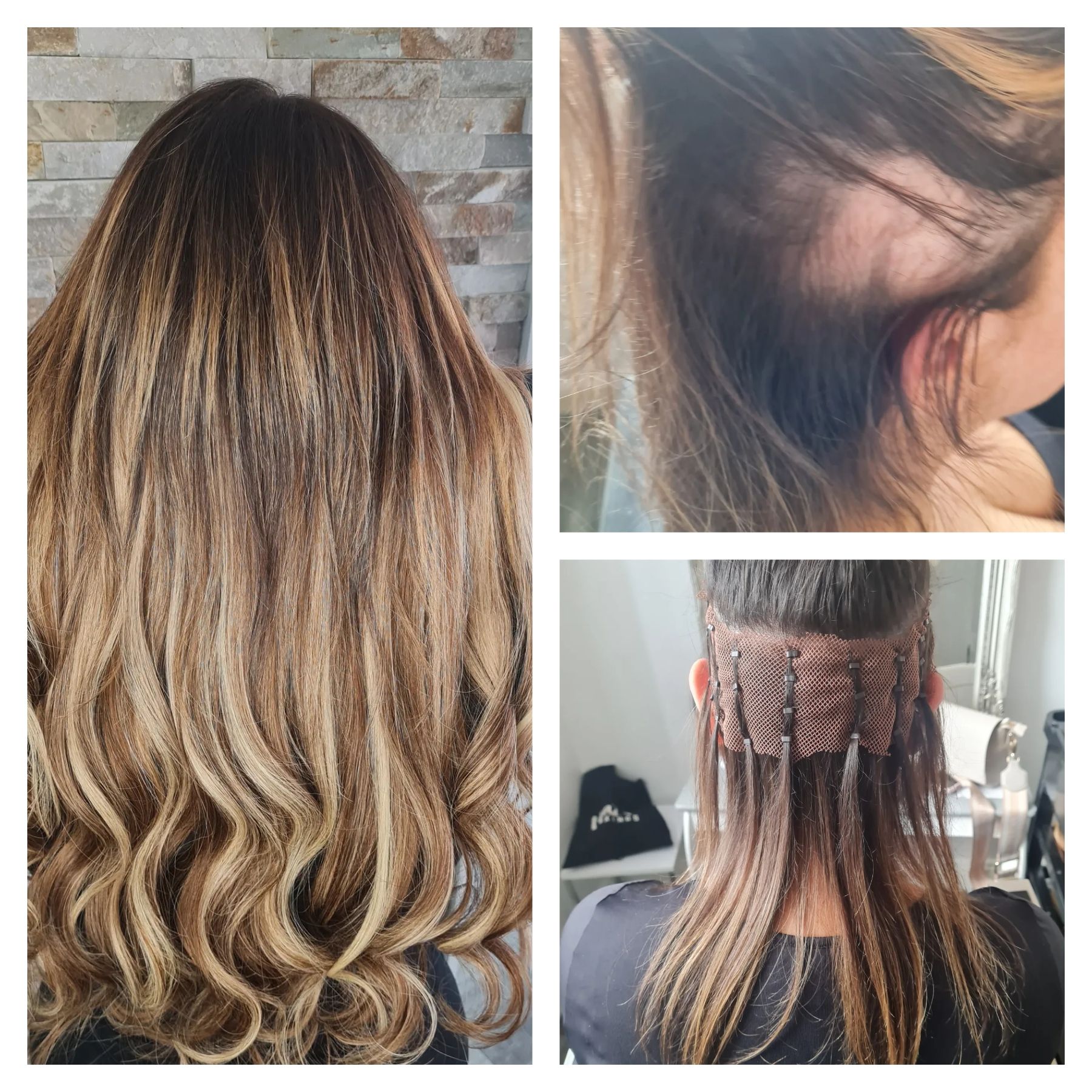 Due to the expertise and nature of this system, there is absolutely no need to cut or shave your natural hair, it will simply be blended into the extensions for a natural, seamless finish. This means there will be no damage or tension on your hair or scalp as it is extremely important to protect the health of these.